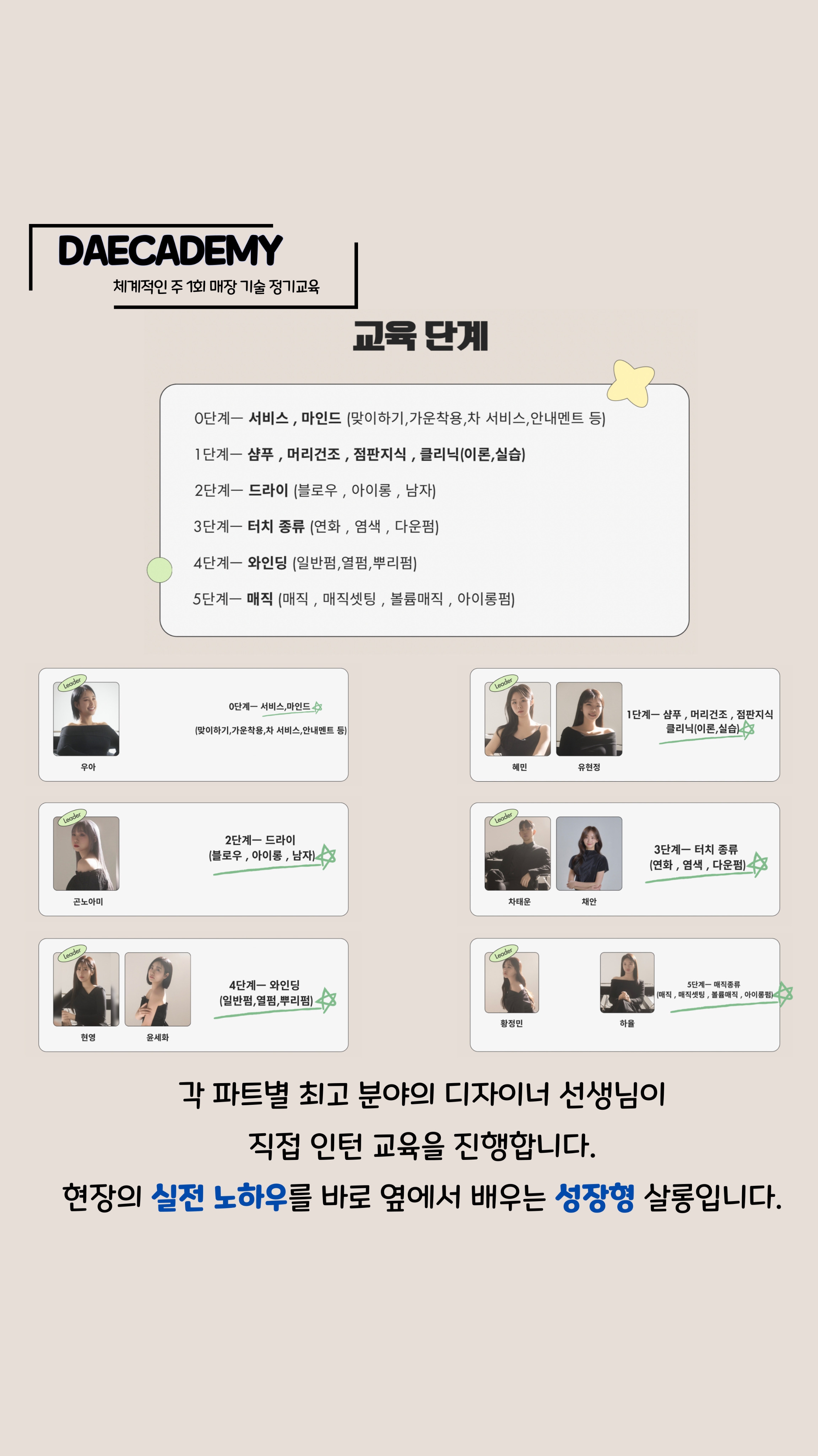 이 모든 성공의 노하우를 아낌없이 베풀어주시는 원장님과 선생님들, 인턴분들과 함께 행복한 미용하기로 해요~