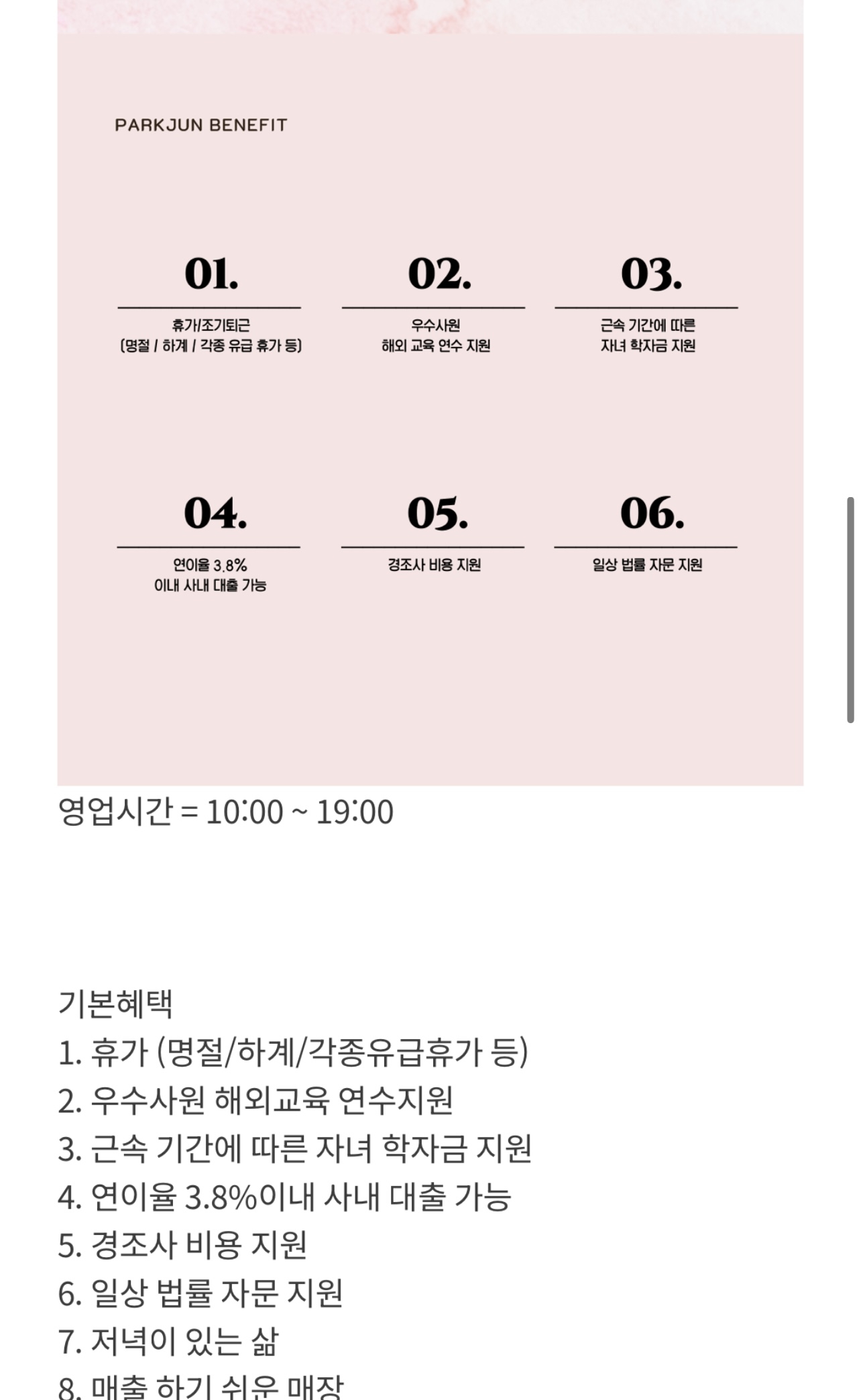- 정착지원금 월 신입270 경력 280~ 실장급 350~ / 매장 월 신규고객 400명 이상